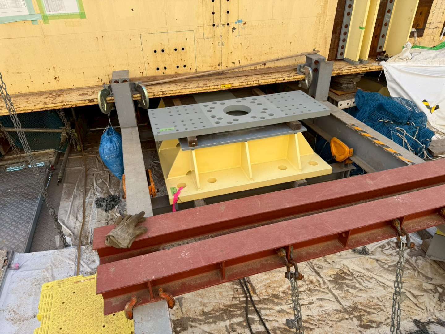 橋の「支承(ししょう)」は、橋桁と橋脚の間に設置され、橋の重さを支えながら、温度変化による伸縮や地震の揺れを吸収する、まさに“心臓部”とも言える重要な部材です。 今回のプロジェクトは、老朽化したこの支承を、橋の交通を止めずに(=生きたまま)交換するという、極めて高度な技術と緊張感を伴うものでした。